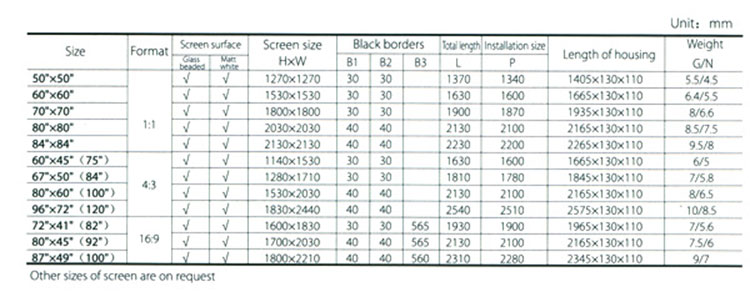 ◊ Special high-low roller makes screen surface completely flat. surface choices are Matte White, Glass Beaded and Pearlux White and Grey.
