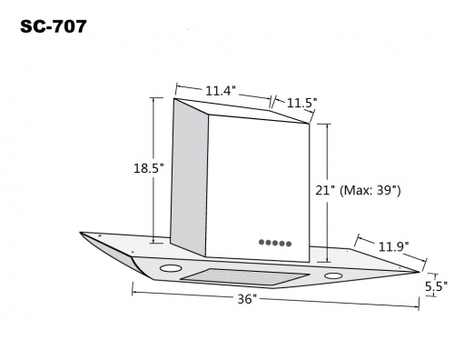 Beautifully designed, this unique and innovative machine will be the centerpiece of your cooking and entertainment area. Inspired by the alluring combination of art and functionality, the 36" wide SC707 is sure to make a lasting impression on any quest to your home. Features three fan speeds, halogen lights, and a nine minute time-delay off function for added convenience. This model is a wall-mounted hood.