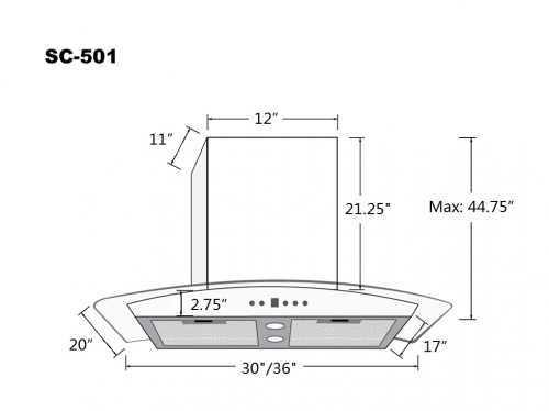 A very stylish exhaust fan, it is the perfect balance of substance and style. The graceful contour of the arched glass canopy coupled with the brilliant shine of the stainless steel body give an impression that is at once both modern and classic. The hood features a digital three speed control panel, button controlled halogen lights, two stainless steel BAFFLE filters, and a quiet, efficient motor. Fitted with time delay "OFF" options up to nine minutes.